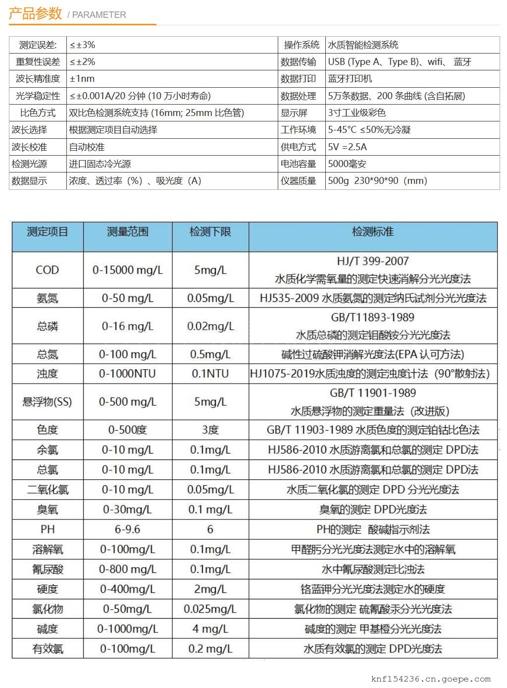 1、支持COD、氨氮、总磷、总氮、浊度、悬浮物……等40多项检测指标。